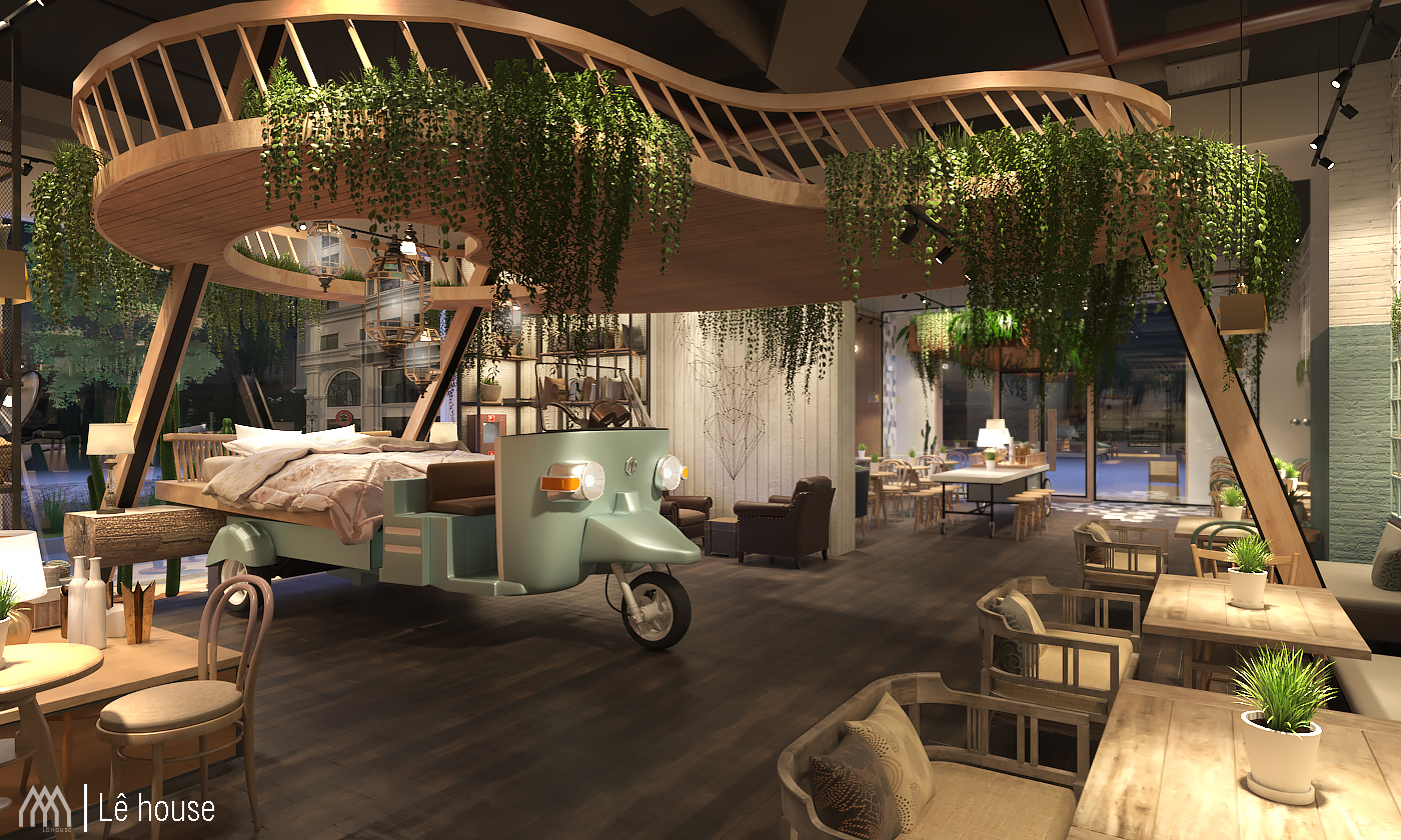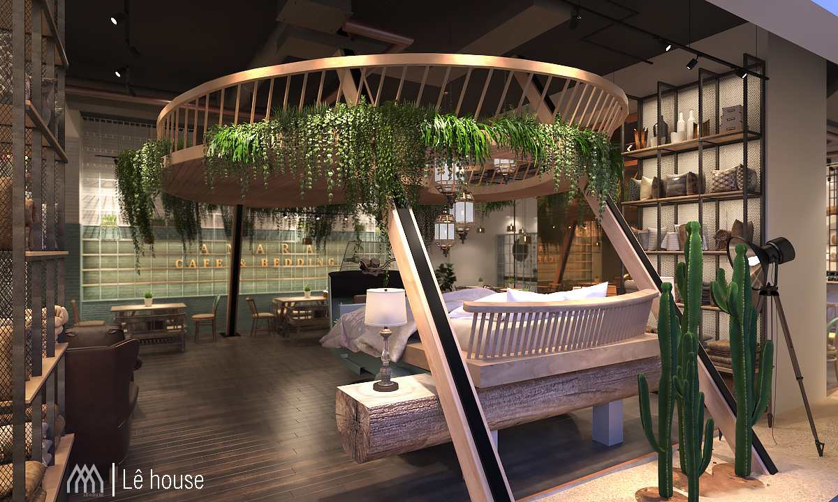một thương hiệu rất lạ khi lần đầu kết hợp giữa không gian cafe với không gian trưng bày bán sản phẩm về Chăn-Grap giường, nghe có vẻ lạ không hề ăn nhập với nhau phải không nào? Vậy hãy chờ đợi những hình ảnh thiết kế mà cả ekip LÊ HOUSE làm cách nào và độc đáo ra sao nhé!!